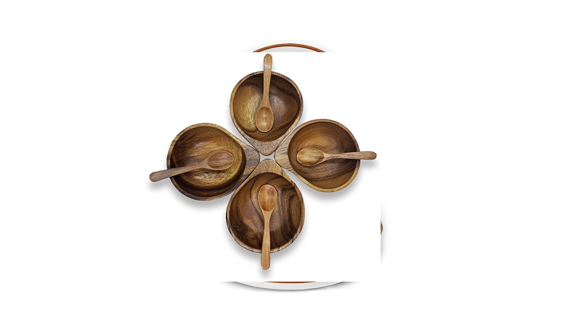 - FREE ACACIA WOOD SPOON: A set includes 4 pieces of Acacia Wood Bowl in 3¾" diameter x 1½" height and GET FREE 4 PIECES OF ACACIA WOOD SPOONS